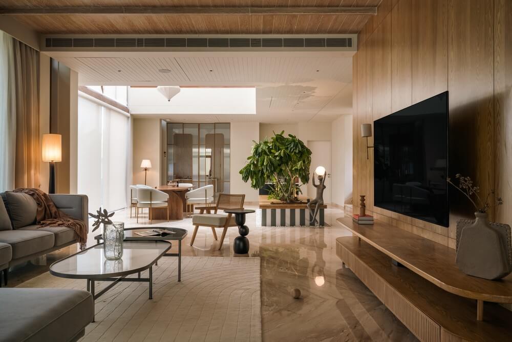 This residence has been thoughtfully designed to balance functionality, comfort, and aesthetic appeal across three levels—ground, first, and second floor. The planning prioritizes natural light, ventilation, privacy, vaastu and seamless movement throughout the space, while also embracing a modern yet warm design language. While designing this home the major focus was to keep the sun and wind direction in mind, so when you see the layout, The entry, foyer, and formal living room fall on the north/northeast, receiving diffused and consistent daylight. These zones stay cooler and brighter without direct heat, making them ideal for longer use during the day.